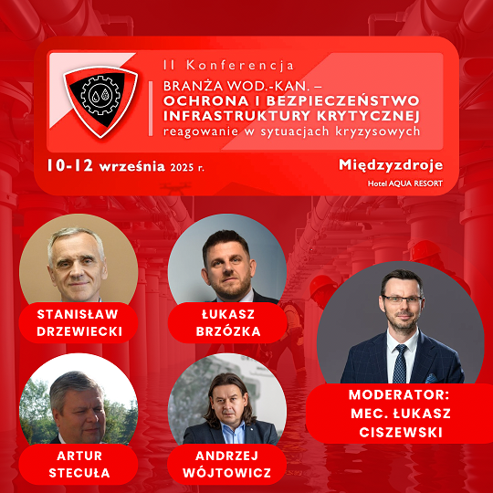 Z dumą informujemy, że Prezes naszej Spółki weźmie udział w prestiżowej konferencji „Branża wod.-kan. – Ochrona i bezpieczeństwo infrastruktury krytycznej – Reagowanie w sytuacjach kryzysowych” która odbędzie się w dniach 10-12 września 2025 roku w Międzyzdrojach