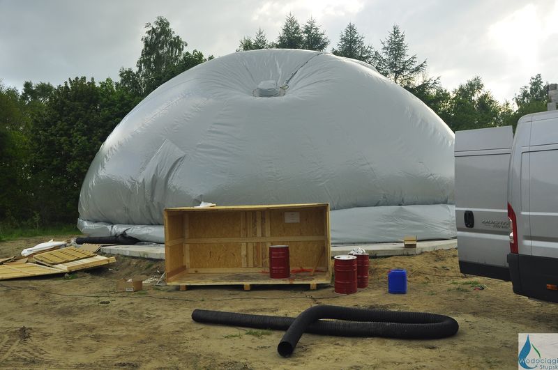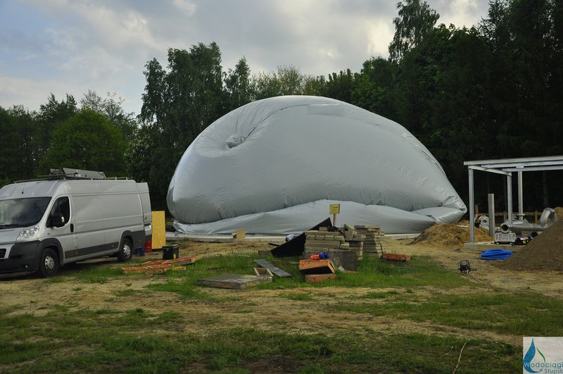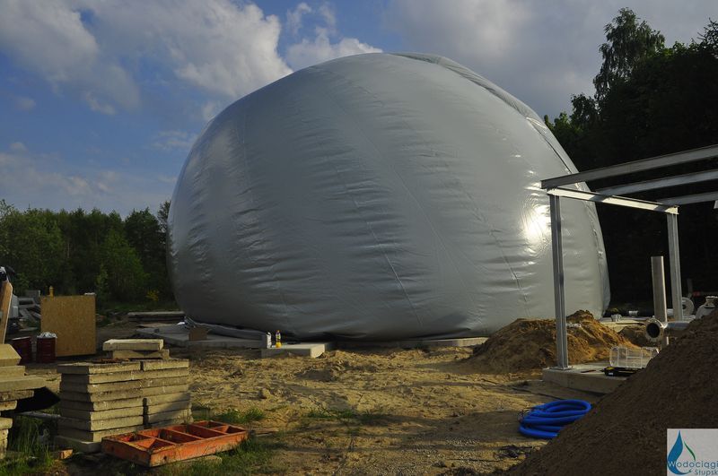 Zbiornik biogazu zbudowany jest z dwóch powłok. Powłoka zewnętrzna, utrzymywana w stanie naprężenia i stanowi osłonę dla wewnętrznego zbiornika, w którym magazynowany jest biogaz. System pomiaru ilości biogazu (stanu napełnienia zbiornika) przekazuje informację do zespołu agregatów prądotwórczych. Na tej podstawie agregaty dostosowują swoją moc.