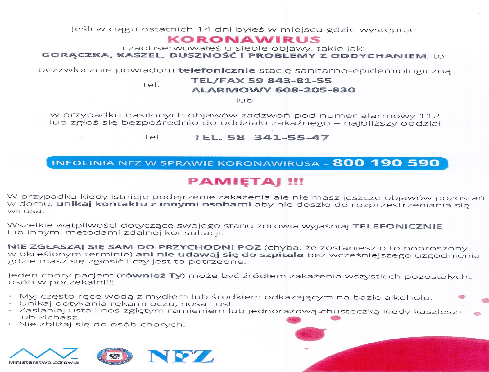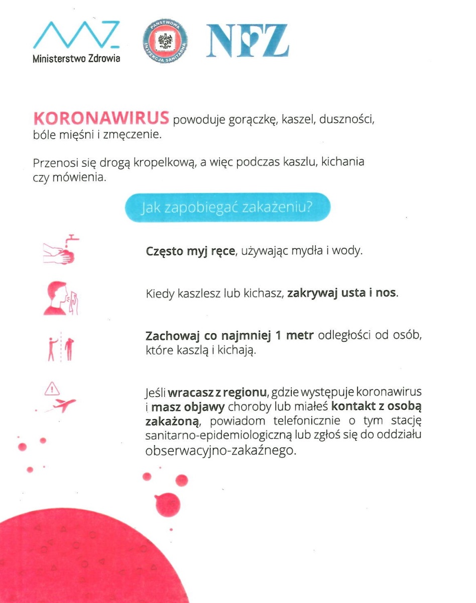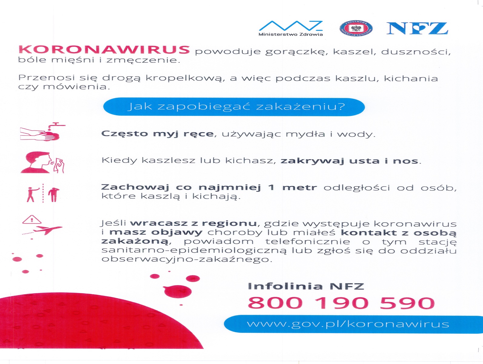 Informacje oraz zalecenia w sprawie koronawirusa wydane przez NFZ