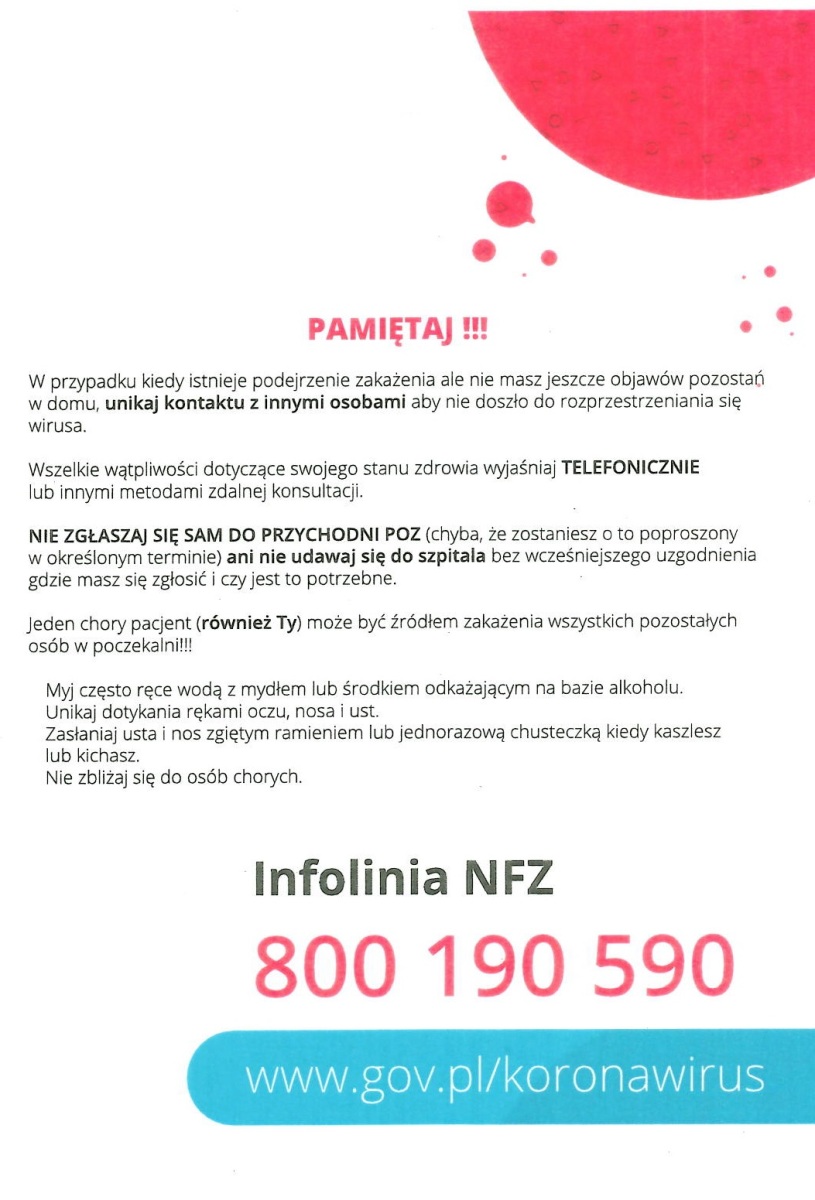 Poniżej publikujemy plakaty, które otrzymaliśmy z Narodowego Funduszu Zdrowia z prośbą o zapoznanie się z ich treścią.