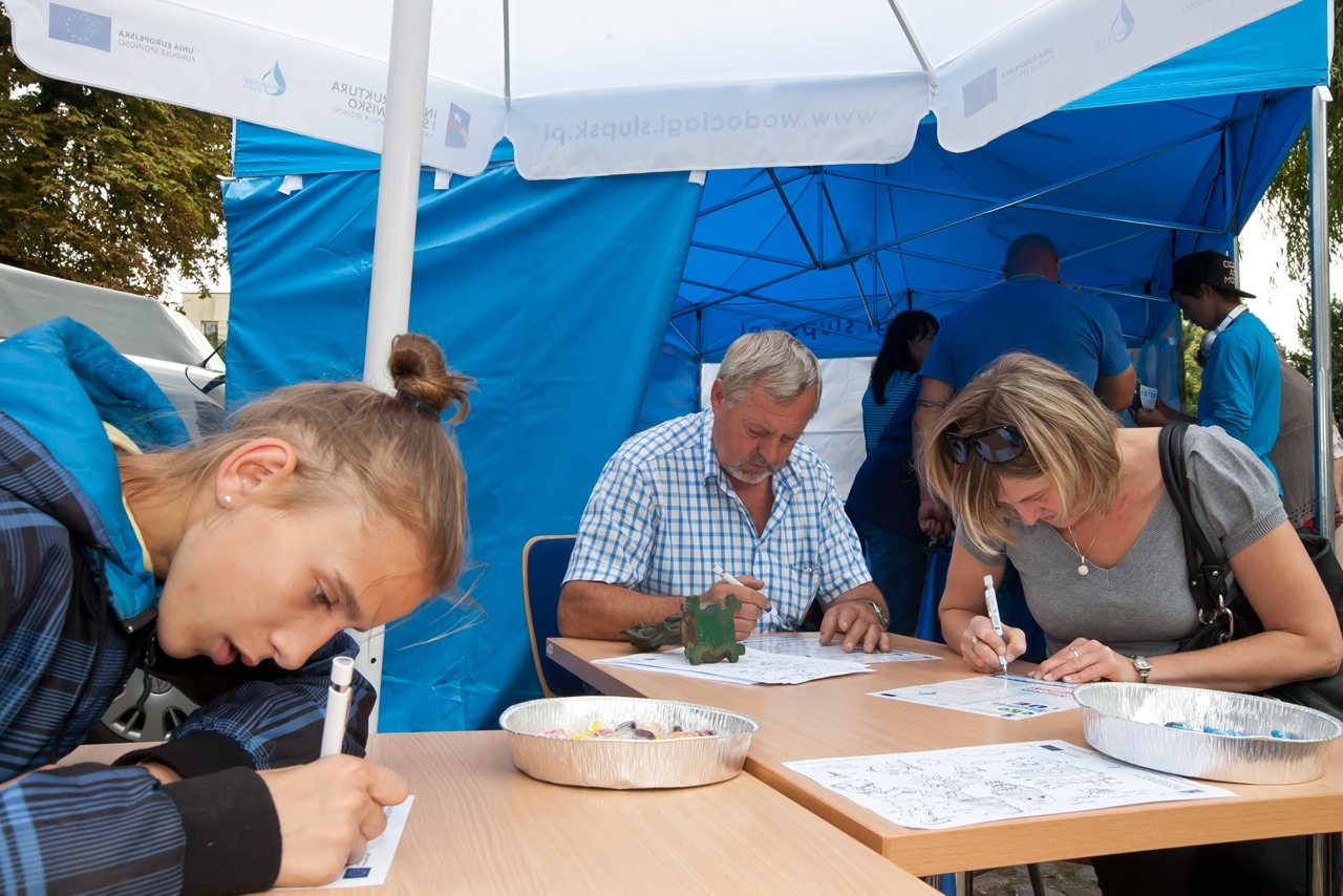 Jednym z celów działalności Spółki jest poszerzanie wiedzy i świadomości ekologicznej, uwrażliwienie społeczeństwa na problemy szeroko rozumianej ochrony środowiska. Na naszym niedzielnym stoisku do dyspozycji byli pracownicy firmy, którzy odpowiadali na wszelkie pytania dotyczące działalności przedsiębiorstwa, a zwłaszcza na temat realizowanego obecnie przez spółkę projektu pn. „Gospodarka osadowa w oczyszczalni wraz z modernizacją sieci kanalizacyjnej w aglomeracji Słupsk” – współfinansowanego przez Unię Europejską ze środków Funduszu Spójności w ramach Programu Infrastruktura i Środowisko.