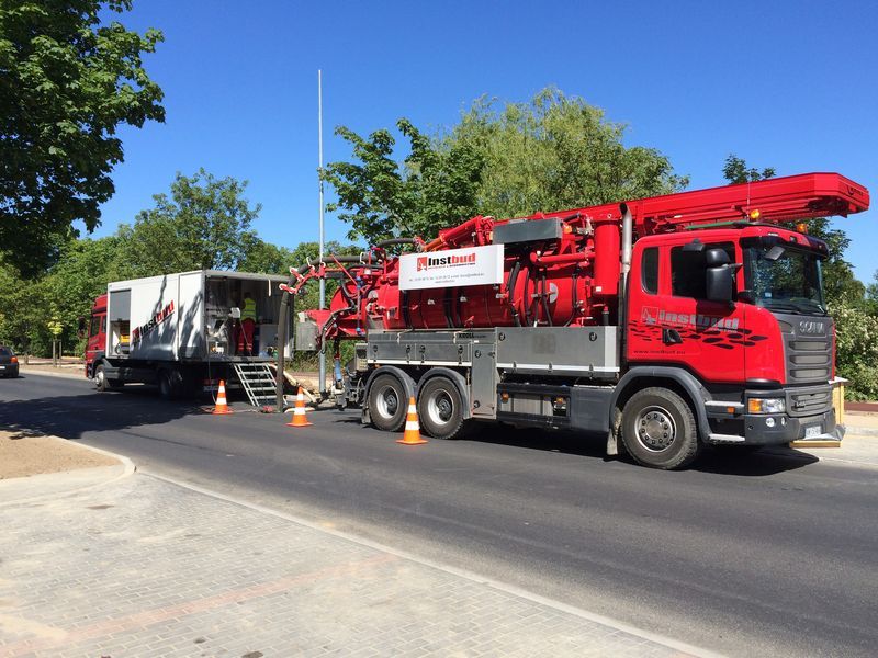 W związku z planowaną przebudową ulicy Małcużyńskiego oraz realizacją „Ringu Drogowego Słupska” przed rozpoczęciem robót „Wodociągi Słupsk” Sp. z o.o. wykonała inspekcje TV sieci kanalizacyjnej, by sprawdzić jej stan techniczny. Po analizie, która wykazała, że na niektórych odcinkach występują drobne uszkodzenia rurociągów, podjęto decyzję o ich renowacji metodą bezwykopową. Metoda ta gwarantuje poprawę parametrów technicznych rurociągu, a przede wszystkim jego wytrzymałości. Polega na wprowadzeniu do istniejącego rurociągu rękawa z włókna szklanego nasączonego żywicami. Rękaw po rozprężeniu i dopasowaniu do średnicy rurociągu zostaje utwardzony przy pomocy lamp emitujących promienie UV.