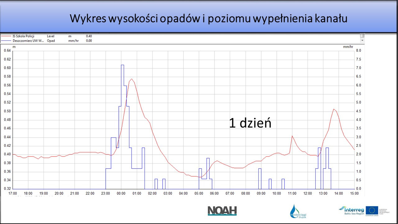 Jest to jedna z głównych części projektu NOAH, w ramach którego Spółka „Wodociągi Słupsk” zakupiła system monitoringu. Urządzenia te mierząc wysokość i czas trwania opadów atmosferycznych, jak również poziom wypełnienia kanałów umożliwią specjalistom z Politechniki Gdańskiej – naszego partnera w projekcie — opracowanie modelu hydraulicznego systemu kanalizacyjnego Miasta Słupska. Dzięki temu będzie można przewidzieć możliwe podtopienia na terenie miasta, a co za tym idzie skuteczniej przeciwdziałać negatywnym zjawiskom spowodowanym m.in. zmianami klimatu.