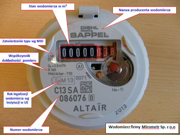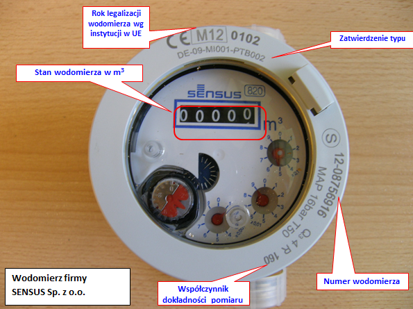 Oznaczenia na wodomierzach stosowanych przez „Wodociągi Słupsk” Spółka z o.o. przedstawiają poniższe zdjęcia:
